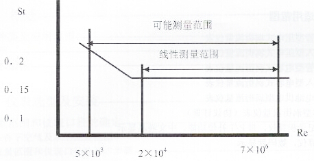 K除與漩渦產生體、管道的多少尺寸有關外,還與斯特勞哈爾數有關。斯特勞哈爾數為無窮綱參數,它與漩渦產生體外形及雷諾數有關,圖2所示為圓柱狀漩渦產生體的斯特勞哈爾數與管道雷諾數的干系圖。由圖可見,在ReD=2×104~7×106規模內,St可視為常數,這是儀表普通任務規模。當丈量氣體流量時,只需檢測出頻次f便能夠求得管道內流體的流速,有流速V求出體積流量。所測得的脈沖數與體積量之比稱之為儀表常數K,見公式:
